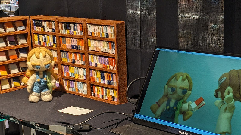 10月29日から11月3日まで、京都の大垣書店にて開催される「本屋の人形展」に出展します。今日は搬入に行ってきました。イベントは去年の本屋の人形展以来で、お知らせも1年ぶりとなります。今回は新しい人形はなく、以前制作した人形を使用してのストップモーションアニメの展示です。会場にディスプレイを設置して繰り返し再生を行っています。1分くらいの短い作品で、本屋さんが舞台となっています。一部紹介しますので、お近くに来られた際はのぞいてみてください。